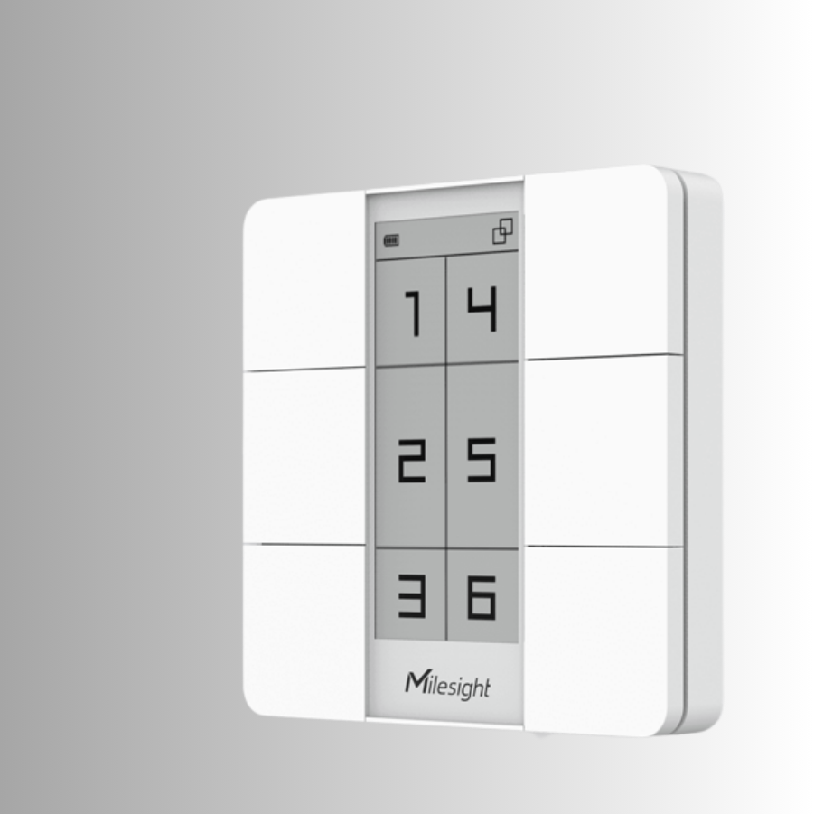 De Milesight WS156-868M is een stijlvol en draadloos LoRaWAN-bedieningspaneel waarmee tot 6 verschillende scènes of functies kunnen worden bediend.