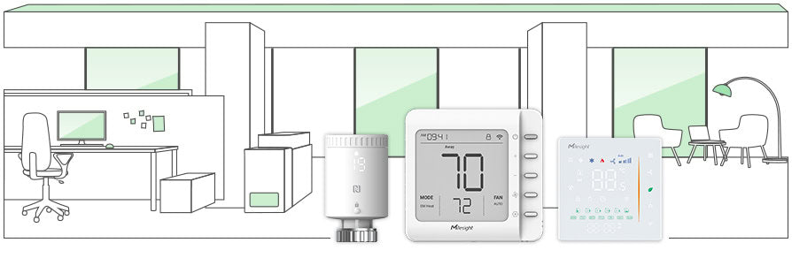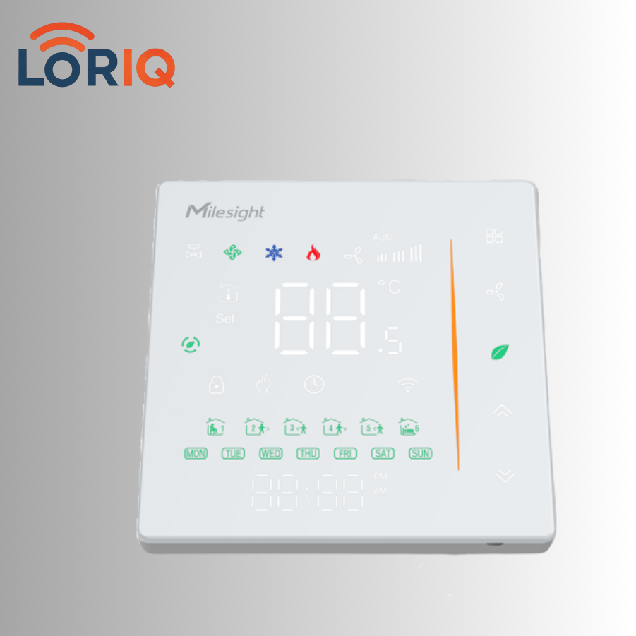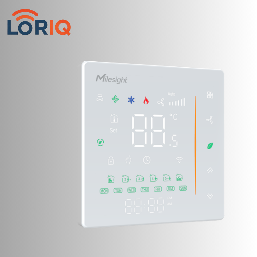 De Milesight WT301 is een slimme fan coil thermostaat op basis van LoRaWAN®, voorzien van een modern touchscreen voor gebruiksvriendelijke klimaatregeling.